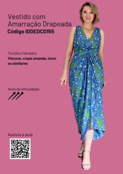 Molde de Vestido com Amarração Drapeada – Molde em PDF