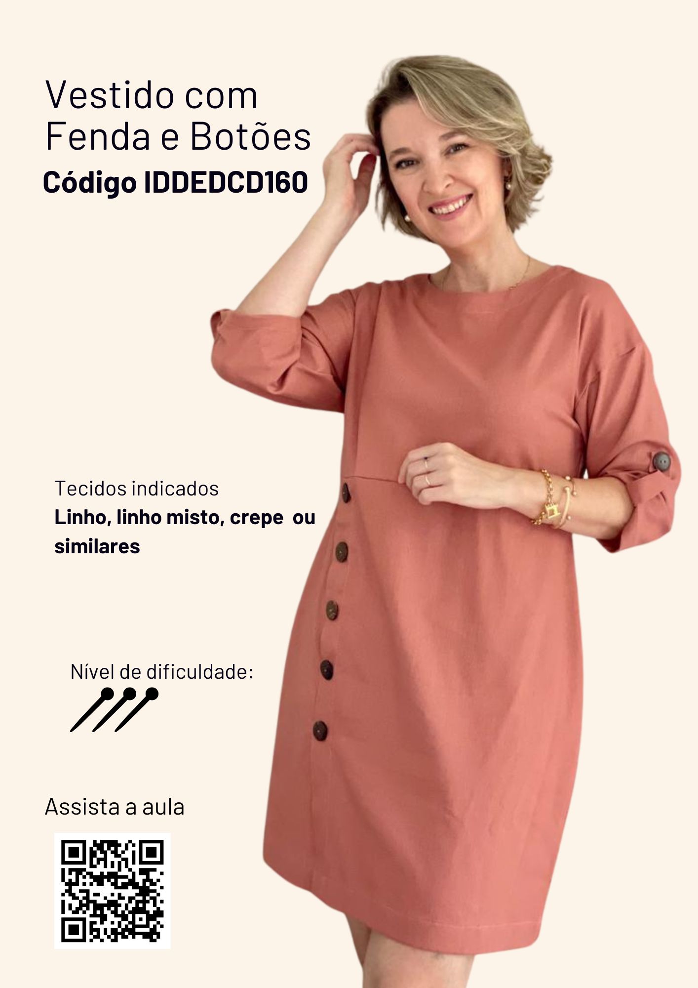 Molde de Vestido com Fenda e Botões – Molde em PDF