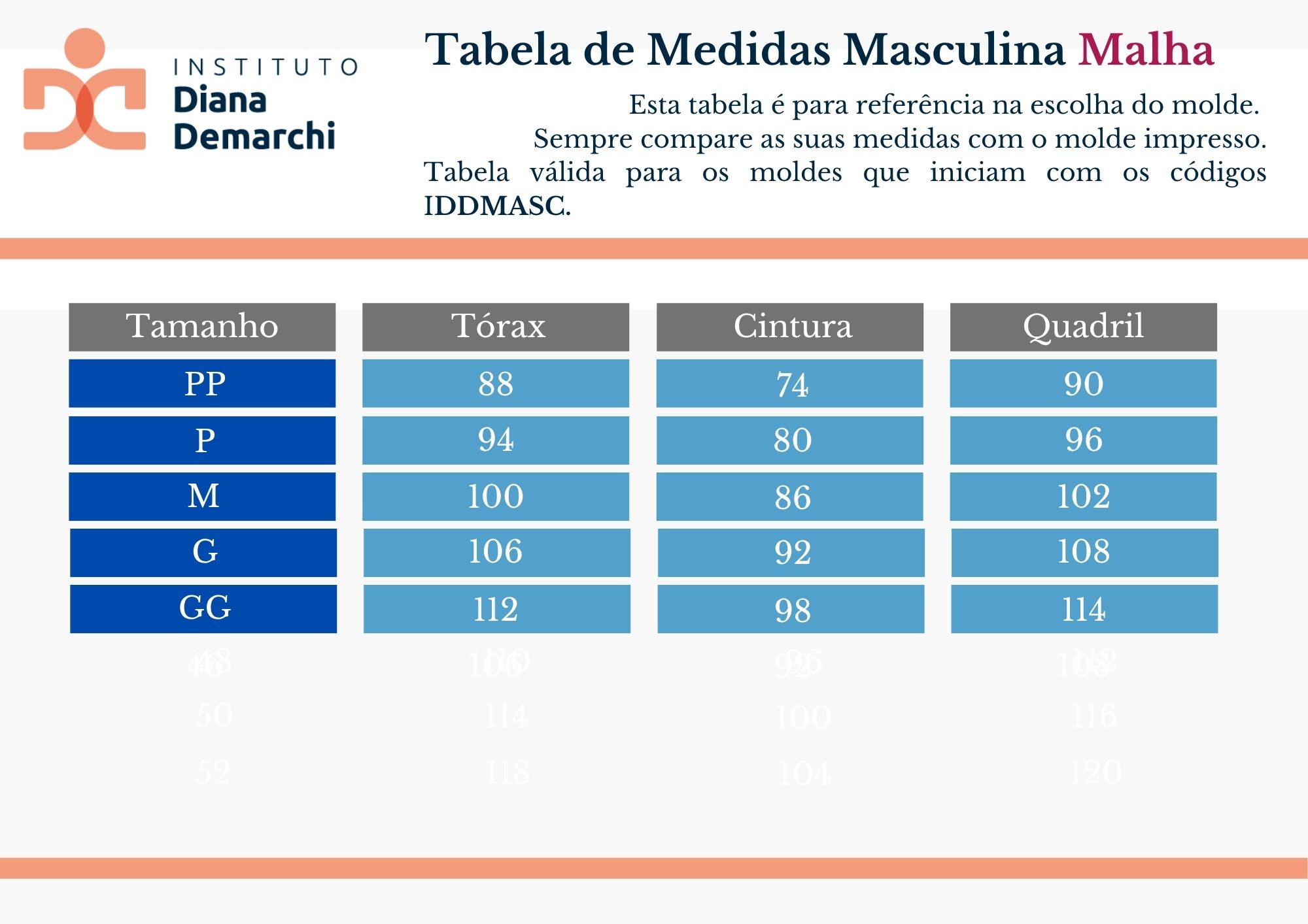 Molde de camisa polo maga comprida nos tamanhos 36 ao 54